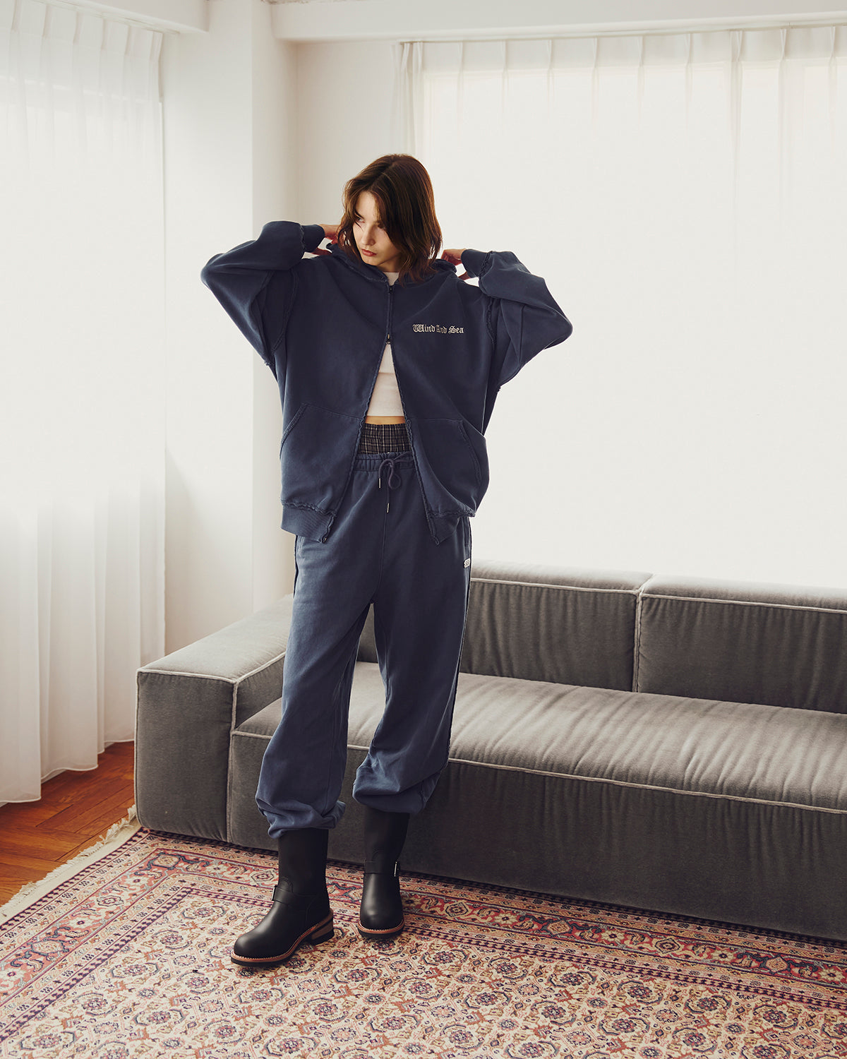 Female model is 178cm wearing size L(IVORY・BLUE)