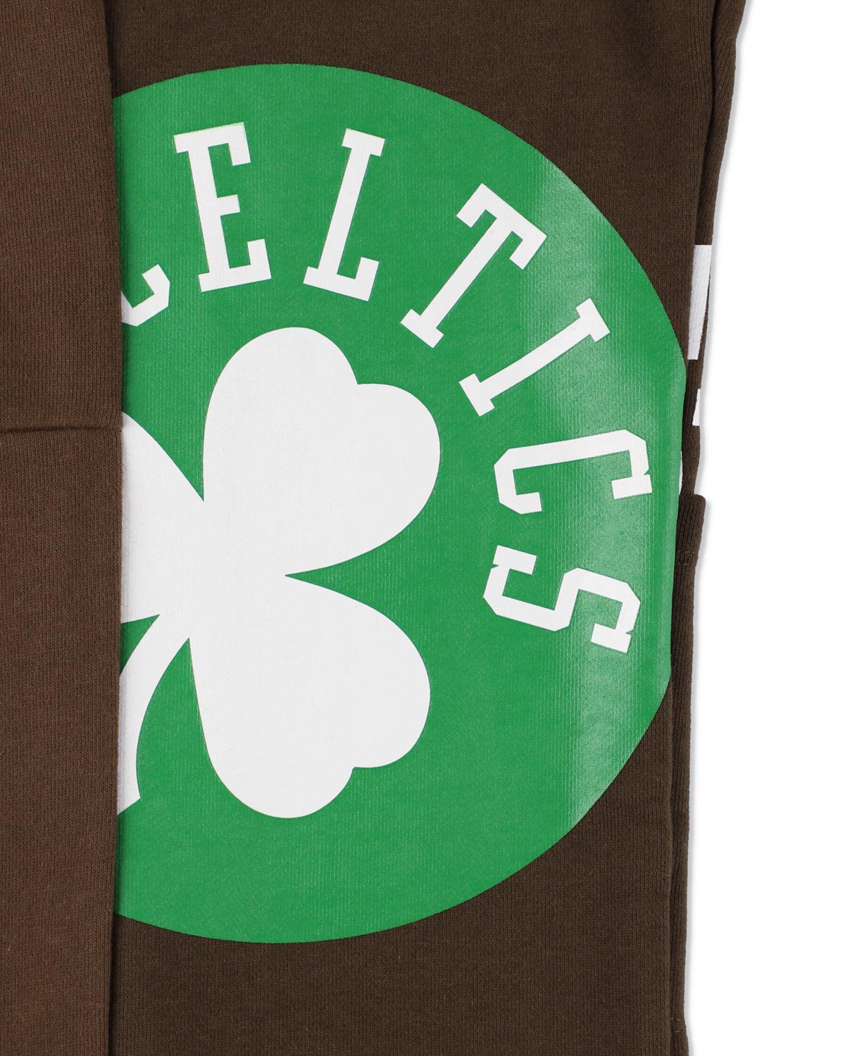 A pair of hybrid sweatpants featuring the 1993 Chicago Bulls vs New York Knicks, 2000 Los Angeles Lakers vs Portland Trail Blazers, and 2012 Miami Heat vs Boston Celtics—deconstructing and reconstructing hoodie design elements, with graphics executed in silk-screen prints, flock prints, and other mixed techniques.